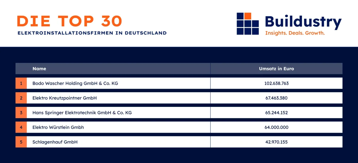 Auszug aus den Top 30 Elektroinstallationsfirmen
